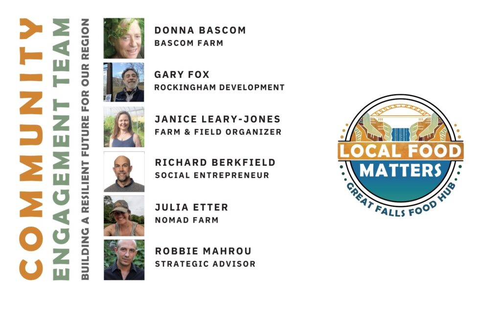 Other Local Food Matters contributors include Rockingham Development Director Gary Fox (also an original participant of the Great Falls Food Hub), Strategic Advisor Robbie Mahrou, Graphic Designer Aleta Coursen and Community Organizer Marcella Eversole.